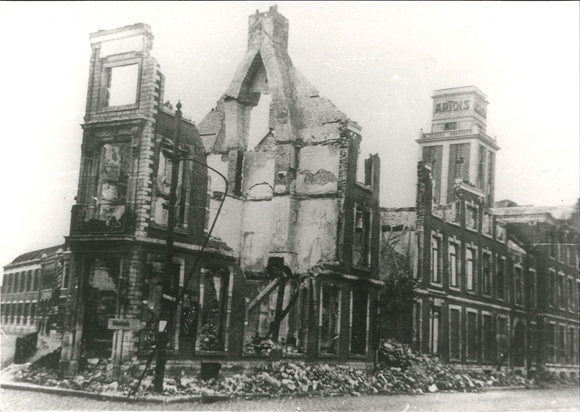 Léon Verhelst mobiliseert zijn collega-brouwers om de wederopbouw van Leuven te helpen financieren na de bombardementen in april en mei, die ernstige schade toebrachten aan de brouwerij en aan de huizen van de werknemers.