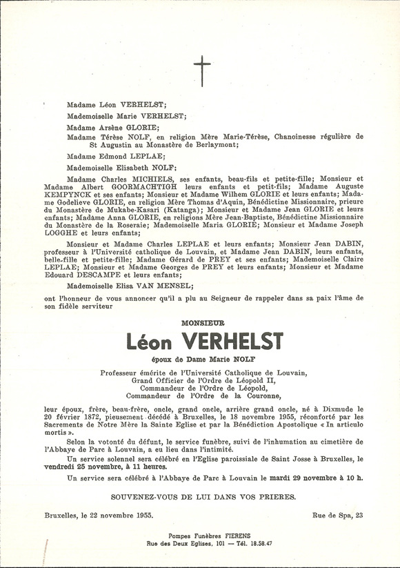 Léon Verhelst huwt Marie Nolfs (nicht van Professor Vuylsteke)